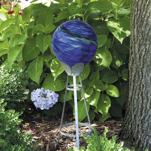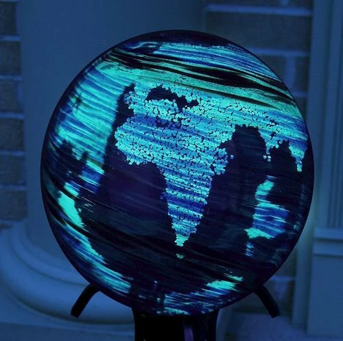 Capture the essence of the night sky with this colorful, luminescent 10″ glass gazing globe! Luminescent crystals applied inside the hand-blown glass globe absorb light energy during the day and emit a warm, soothing glow at dusk. Glow duration will last up to 4 hours, depending on the light exposure, but the best viewing will occur shortly after sundown. When displayed on a pedestal or stand it creates a beautiful focal point for any landscape setting.