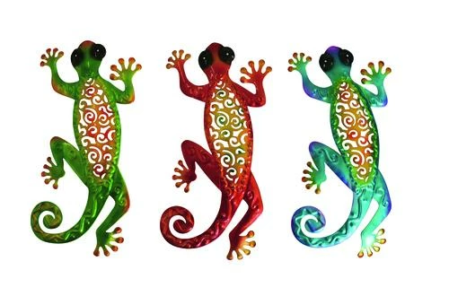 These wall-mounted metal geckos are full of bright details. Constructed from hand-painted metal, they’re available in a variety of colors so you can choose the one that perfectly complements your style.