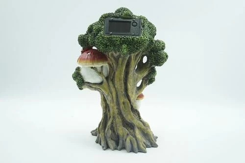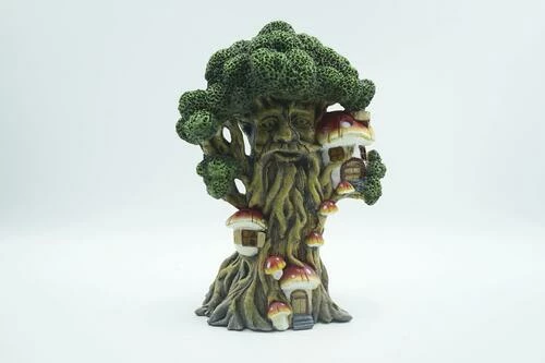 Create a fairy garden with this solar powered tree house. The house lights up once it gets dark and illuminates from inside. The front of the tree house has a face grown into the trunk.