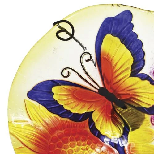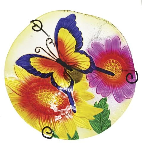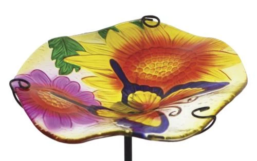Brighten up your garden or yard with this beautifully detailed glass birdbath. Each bird bath measures 11″ diameter and stand 26″ tall with the stand (included). Made for outdoor use.