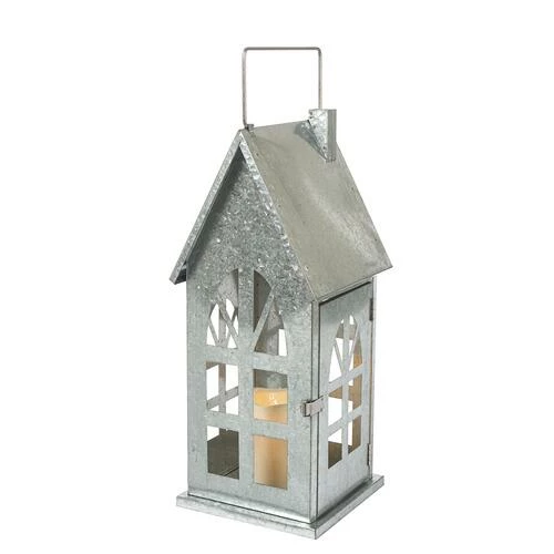Add some light to your decor with this galvanized metal lantern. It features a flameless LED candle that provides the look of a real candle.