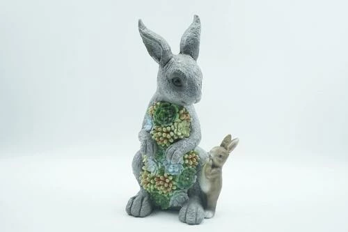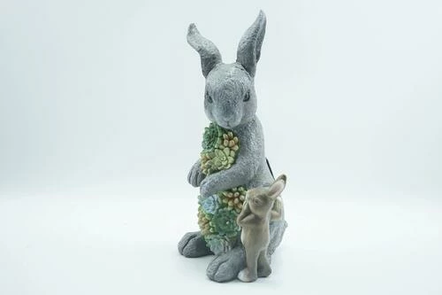 Add a little lighted feature to your garden with this cute rabbit and her little bunny. The rabbit is designed with succulents on her body that light up at night by using a solar panel. Each night the flowers will glow for 6-8 hours and recharge the next day.
