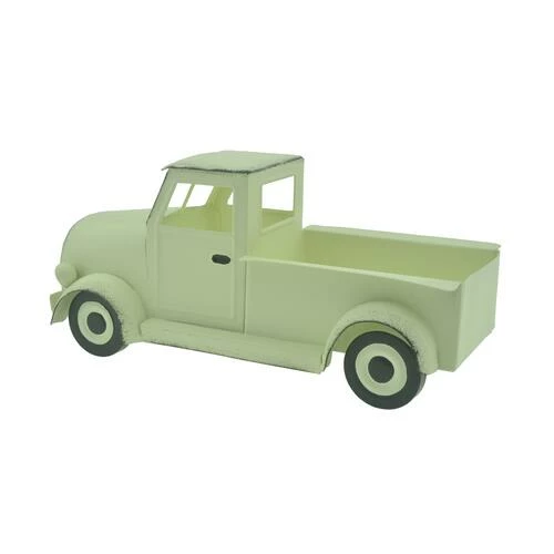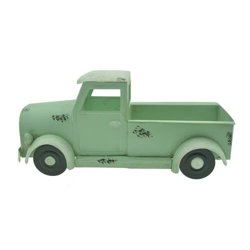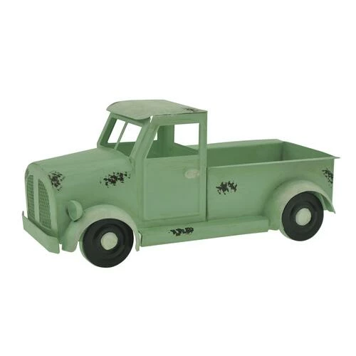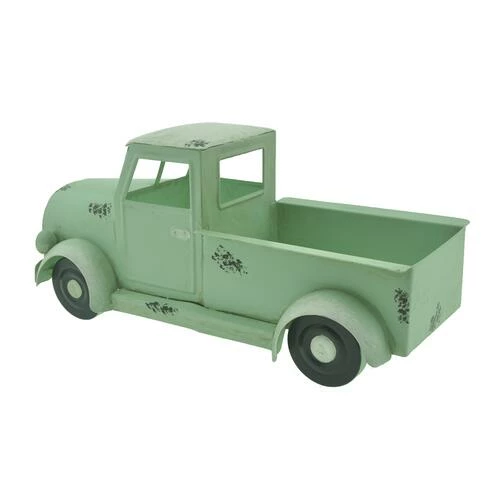 This charming and rustic looking pick-up truck is sure to mix in well with your farmhouse themed Decor. The truck is an all-metal construction with an aged patina paint scheme. It offers a bit of storage in the bed of the truck, so you can get creative by adding a small plant or other Decorative items.