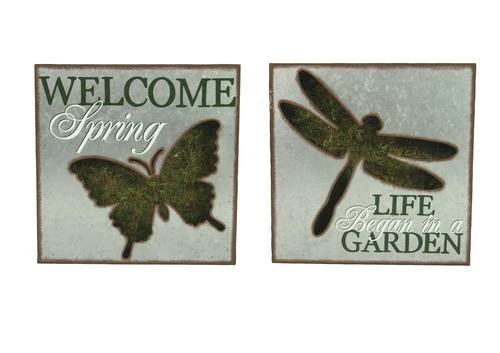 The galavanized metal rustic wall decor, embossed with mossy butterfly or dragonfly, is just the right piece for a small space.
