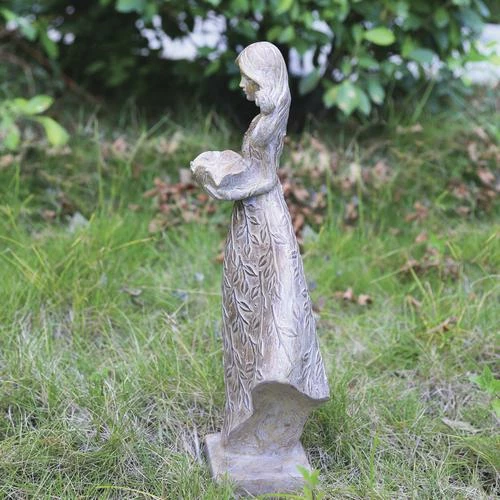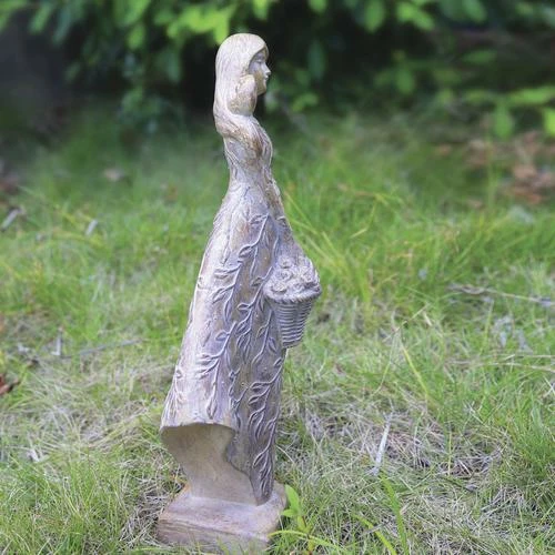 Add an empowering and chic touch to your home with the Enchanted Garden Girls Statuary. Choose from 2 different designs. One statue is holding a basket and the other is holding a birdfeeder. Both are featured in wood hues. Each statue stands at 17″ tall. This is perfect for your garden or fireplace mantel. Made out of sturdy Polyresin. Move product indoors during harsh weather. Clean with damp cloth.