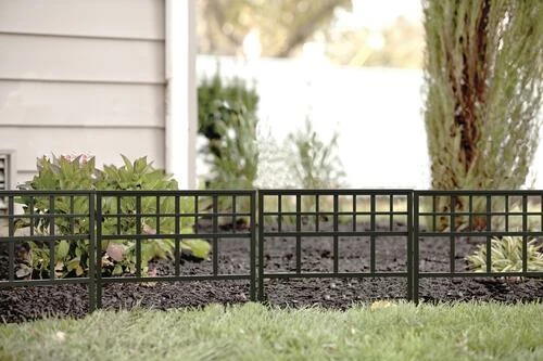 - Fence border section is easily positioned by pressing leg stakes into soil