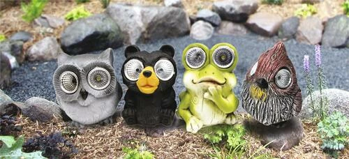 These mini solar lights are made of cement and will add a touch of whimsy to your outdoor decor. Choose from four fun designs.