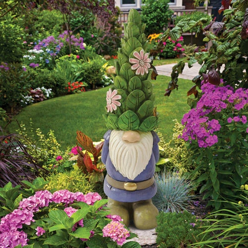 Bring a touch of whimsy to your yard with this fun gnome statue wearing a large plant hat. Use the yard gnome to offer a warm welcome to your home, front yard, garden, or patio.