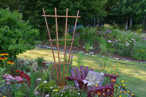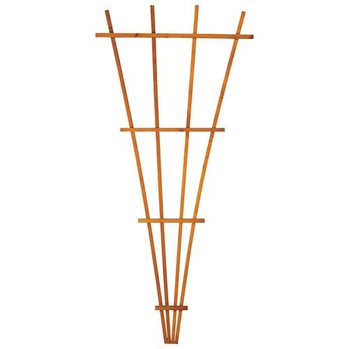 This classic trellis provides excellent plant and vine support. Measuring a full 6 feet tall and 32 inches at the widest point, it readily provides the needed trellising for a wide variety of plants including roses, beans and flowering vines such as Clematis, Jasmine and Wisteria. What separates this trellis from other large fans is the quality of materials and construction. We start with a better grade, select-tight-knot western cedar with the added protection of a proprietary reddish-brown stain. Every slat intersection is then glued and stapled with rust-resistant fasteners to provide a rugged, lasting hold that can withstand the grasp of even the tightest vine. The trellis is proudly made in the USA.
