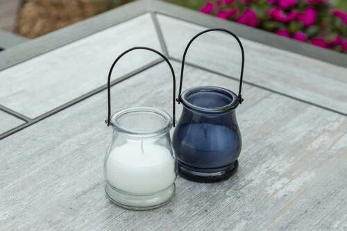 The lantern jar citronella candle is a beautifully decorative citronella candle, yet a very effective defense against biting mosquitoes utilizing 3% citronella oil and 6.5 oz. white wax in the candle. The candle is 4″ H x 3.5″ diameter, and there are four assorted colors to choose from: Red, Blue, Green or Yellow.