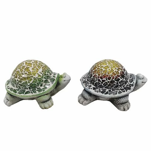 Add some color to your garden with these mosaic turtles. When the sun shines on the top of the turtle shell they will glimmer and add beauty to your garden. These turtles are made of durable cement and will last for many years. There are two colors to choose from; green and red.