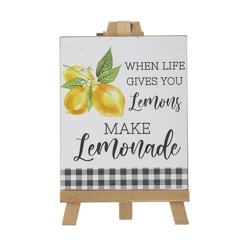 The mini wood easel is decorated with lemons & a lemonade sign.