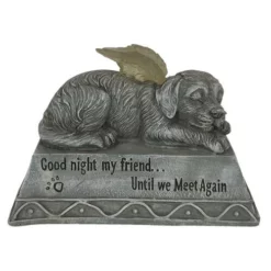 In loving memory, this statue will be a faithful tribute to your beloved pet. The statue features a sleeping pet with wings that will be lighted at night. During the day, this energy-efficient solar powered statue utilizes the sunlight to charge its internal batteries. After dark, it will automatically turn on, emitting a soft attractive glow.