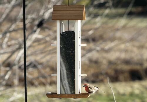 - Steel screen diffuser at base of feeder helps to keep seed flowing and dry