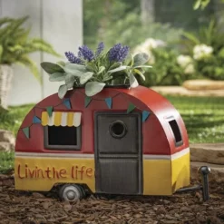 Functional as it is beautiful, the Illuminarie Blue Rainbow Leaf Dual-Motion Windwheel will bring vibrant color and motion to the yard or garden. On a sunny day light will cause the colors in the Tiffany stained-glass like stays to pop and when they are moving as result of the wind, the effect is dramatic! The 2.5″ hand-blown art glass ball adorning the top contains luminescent crystals that absorb energy from the sun and emit that energy in the form of a soft green glow at night. All metal parts have been powder coated to withstand the elements.